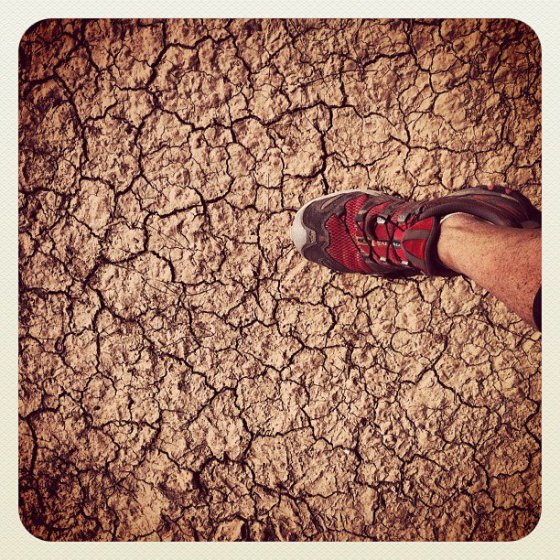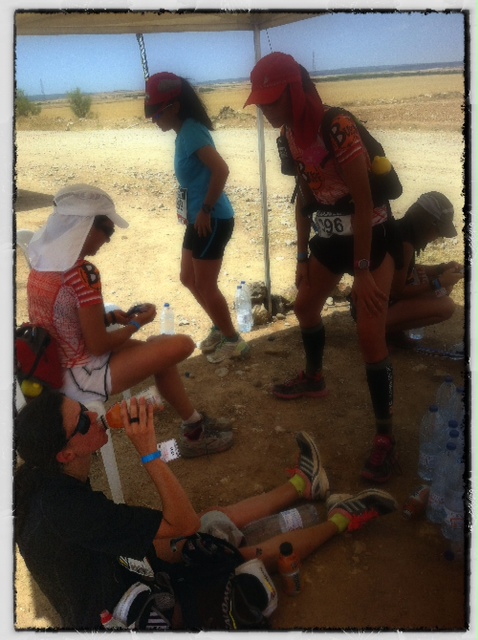 Orinamos donde podemos (chicos y chicas buscando la intimidad que te puede dar el desierto) y me hidrato con mucho Isostar , varios geles y rellenando la bolsa de 1’5l. Lo que queda se presenta complicado.