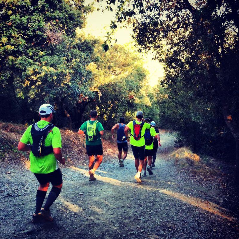 El resto en su linea. Pere un máquina diésel que no para el tío… Encima nos hace de fotógrafo y no deja de hacer bromas en todo el recorrido. No para de animar… De Raul y Albert no se que decir… Es increíble como tiran… Jordi es el tapado… Parece que no, el dice que no, pero luego es que si… También está pletórico… Jose un campeón… Aguanta como un jabato las tiradas por montaña con el resto, sufriendo, pero sin quejarse ni una vez… En cuanto a mi… uffff… Hoy me he sentido mejor que otros días en los que hemos salido por montaña, pero sigo estando muy por debajo del resto. En muchas subidas he tenido que caminar. Más de lo que me hubiera gustado, pero es lo que hay… Según Raul hemos corrido un 90% y caminado un 10% pero en mi caso al menos creo que los porcentajes son diferentes.