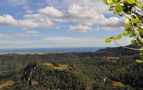 Después de aproximadamente unos 4kms, llegamos a un cortafuegos que se levanta ante nosotros como si fuera una escalera mecanica en un anden del metro. Había momentos en los que incluso el GPS no reconocía ningún avance en la subida… Eso si, ha valido la pena con creces llegar hasta allí arriba. Las vistas que teníamos de prácticamente toda la costa desde creo que Castelldefels hasta Barcelona, y de todas las montañas mas bajas de alrededor. Este pico es el más alto de todo el recorrido, aunque solo subimos 100 metros en algo menos de 800 metros de recorrido. Al llegar arriba nos ha sorprendido ademas de las vistas, una chica sentada en una roca, mirando al mar como meditando… La verdad es que es un sitio ideal…