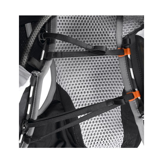 El punto fuerte de esta mochila es la ergonomía que hace que se adapte a la perfección a tu cuerpo. Pensemos que mientras corremos la mochila tendrá que aguantar el movimiento de «arriba-abajo», y mas cuando llevemos casi un litro y medio de agua dentro. Ese balanceo hace que sea un tormento llevar mochila al correr. Pues bien, con la ADVANCED SKIN S-LAB 5 ese movimiento desaparece por completo. La mochila se adapta a tu espalda de tal manera, que el movimiento es nulo. Los ajustes delanteros hacen que no se mueva un ápice. La forma de las «correas» ayuda a esta función al ser totalmente anatómicas. Ademas, el liquido que transportemos se va repartiendo por la bolsa de hidratación mientras lo vamos consumiendo, lo que ayuda a que la mochila siga «pegada» a tu espalda y que no se mueva.
