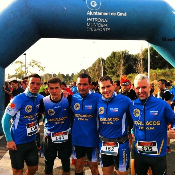 Para variar, no había entrenado lo suficiente y llegaba con pocas fuerzas. Pero César en el km 20 me hizo de escudero hasta en 28, donde se nos unió Albert. Fuimos los tres hasta el 30 y allí nos dejo César y se nos unió Iván. Sin ellos tres, sobre todo sin Iván y Albert, yo no hubiera acabado ese maratón. Desde el kilometro 30 hasta el final tiraron de mi, cogiéndome el agua en los avituallamientos, dándome ánimos a mi y a los runners que adelantábamos y que iban peor que yo, si cabe. Ese día se creó un vínculo brutal. Ese día se hizo grande el Morlacos Team.