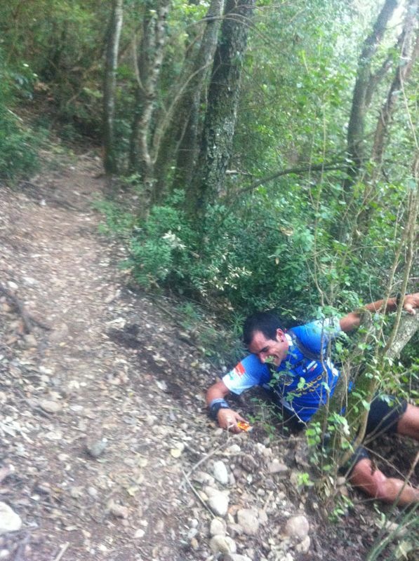 Tras las risas, y tras quitarnos el susto de encima, seguimos subiendo y corriendo. Empezamos a subir por «corriols» que ya subiendo son una trampa, ya que no hay ningún tipo de agarre, lleves las zapas que lleves. En el equipo, ayer, había de todo: ASICS, SALOMON, SPORTIVA, ADIDAS… Ninguna aseguraba no dar un traspiés.