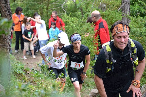 En la plaza de Alpens el ambiente era fantastico. Se ve que la carrera es de las preferidas de casi todo trail runner y se podía ver a gente con una pinta de «pro» que asustaba. Nosotros, ajenos a las apariencias, esperábamos que llegara la hora de la salida, programada para las 8:30 horas. Cuando han dado la salida, a diferencia del año pasado que hicimos el primer kilómetro por debajo de 5 minutos, hemos salido David, Carol, Sensei y yo en grupo. En ese primer kilómetro ya he podido ver que lo iba a pasar realmente mal. Carol y David se me van, mientras que Sensei veo que se queda rezagado. Ya estaba viendo que la carrera iba a ser en solitario.