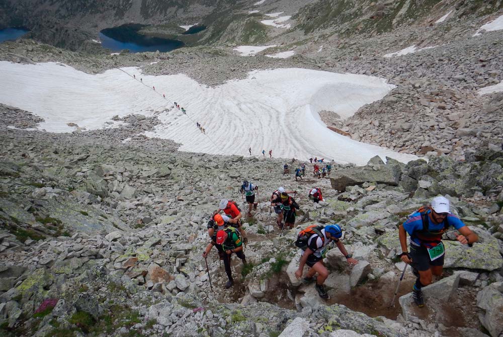 El Gran Trail con sus 109 kilómetros y 7.000 metros de desnivel positivo es la prueba reina. Luego la Vuelta al Aneto de 58 kilómetros y 3.700 metros positivos y como tercera en distancia el maratón. El año pasado participamos en la distancia maratón Pere, Manu, Ivan, Nando, Rafa, Soraya y yo. Este año la carrera cambia un poco, siendo en sentido inverso al del año pasado.