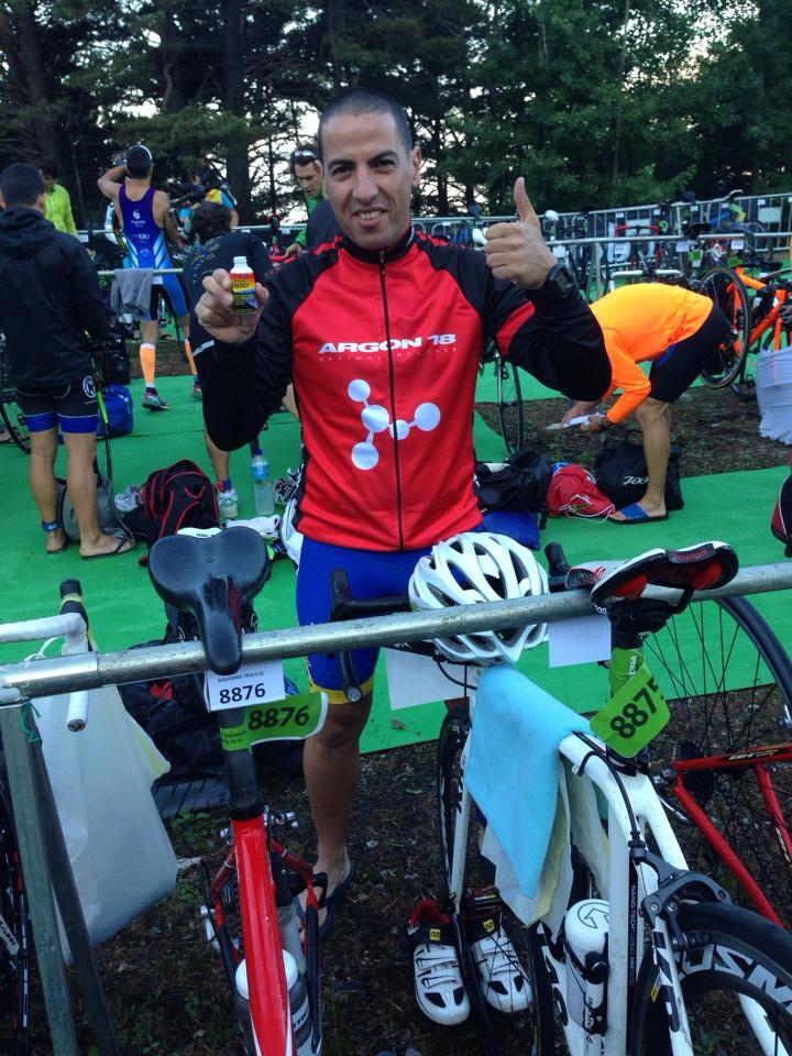 Este momento es el peor de una carrera… Cuando suena el despertador me arrepiento siempre, aunque me dura dos segundos. Bajamos a desayunar y el camarero tiene ganas de charla. Es simpático, pero a esa hora… Visita de rigor al WC y a dejar las zapas, la visera y un gel en la T2. De ahí al autocar que nos llevará al lago de nuevo. En el autocar nos damos cuenta desde otro punto de vista de las rampas que vamos a tener que subir con la bici. Mireya, con poca experiencia sobre su ARGON 18, se queda blanca… A mi me pasa con la parte de agua, pero como dice ella, es diferente.