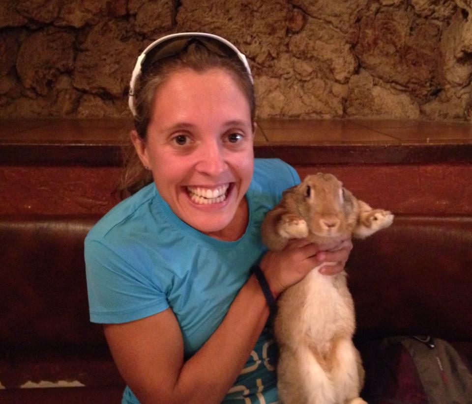 Si la carrera había sido divertida, combinando el trail running (en algún tramo me ha recordado a la Cursa de Les Tres Comarques de Alpens) con los obstáculos, la entrega de premios no ha tenido desperdicio. Primero a los juniors, a quienes les han regalado un pato a la tercera, un conejo a la segunda y una gallina “pinta” a la primera. Pensábamos que había sido por ser los jóvenes, pero no. A los “senior” también. Deberíais haber podido ver la cara de Mireya al subir al pódium y recoger la caja ¡¡con un conejo enorme!! Jajajajaja… El alcalde del pueblo le ayuda a sacarlo de la caja para que lo enseñe al público. Y para rematar, en el sorteo que realizaron después, con mi número de dorsal nos dieron dos menus en una brasería del pueblo que por cierto, es la leche…