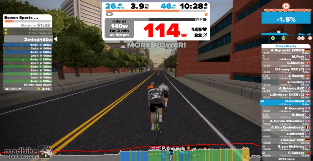 Hay otra aplicación de ZWIFT, llamada ZWIFT POWER, donde se pueden ver rankings por carrera, por país, etc., con información de cada corredor como su peso, altura, datos de su FTP, vatios/kg por 1 minuto, etc… Y ahí es donde te das cuanta de cuanto «anoréxico» virtual tenemos en ZWIFT. Si queréis saber que peso tiene alguien puesto en su perfil, solo tenéis que ver un pantallazo de unos de sus entrenos, y hacer la división de los watios que está moviendo en ese momento, entre los w/kg que aparecen a la derecha de la pantalla. Seguro que a más de uno le va a sorprender el peso de algún amigo…